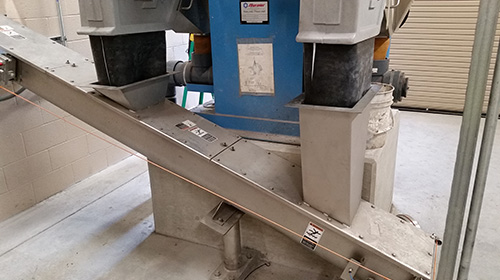傾斜式螺旋輸送機(jī)的入口由旋轉(zhuǎn)式壓力機(jī)供給