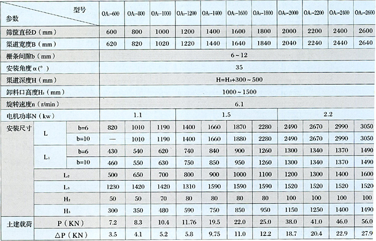 一、用途 OA1型楔形式螺旋格柵除污機(jī)是吸收消化國外先進(jìn)技術(shù),結(jié)合我國水處理的具體實(shí)際情況,研究、開發(fā)、制造出來的一種新型設(shè)備,適用城市污水處理廠的細(xì)格柵,也是集柵污物的截留、輸送和壓榨三者功能為一體的新產(chǎn)品。 二、主要技術(shù)參數(shù)和安裝尺寸表
